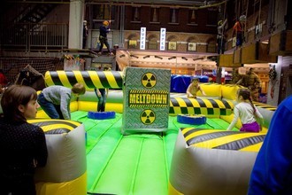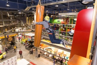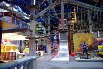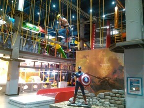 На территории развлекательной площадки несколько зон: верёвочный парк, акробатический батут, лазерный и детский лабиринт, скалодром, зона для прыжков на грушу, слайдер, надувная горка, игровые автоматы, аэрохоккей, одиннадцать больших фигур супергероев, с которыми можно сфотографироваться на память и многое другое.
